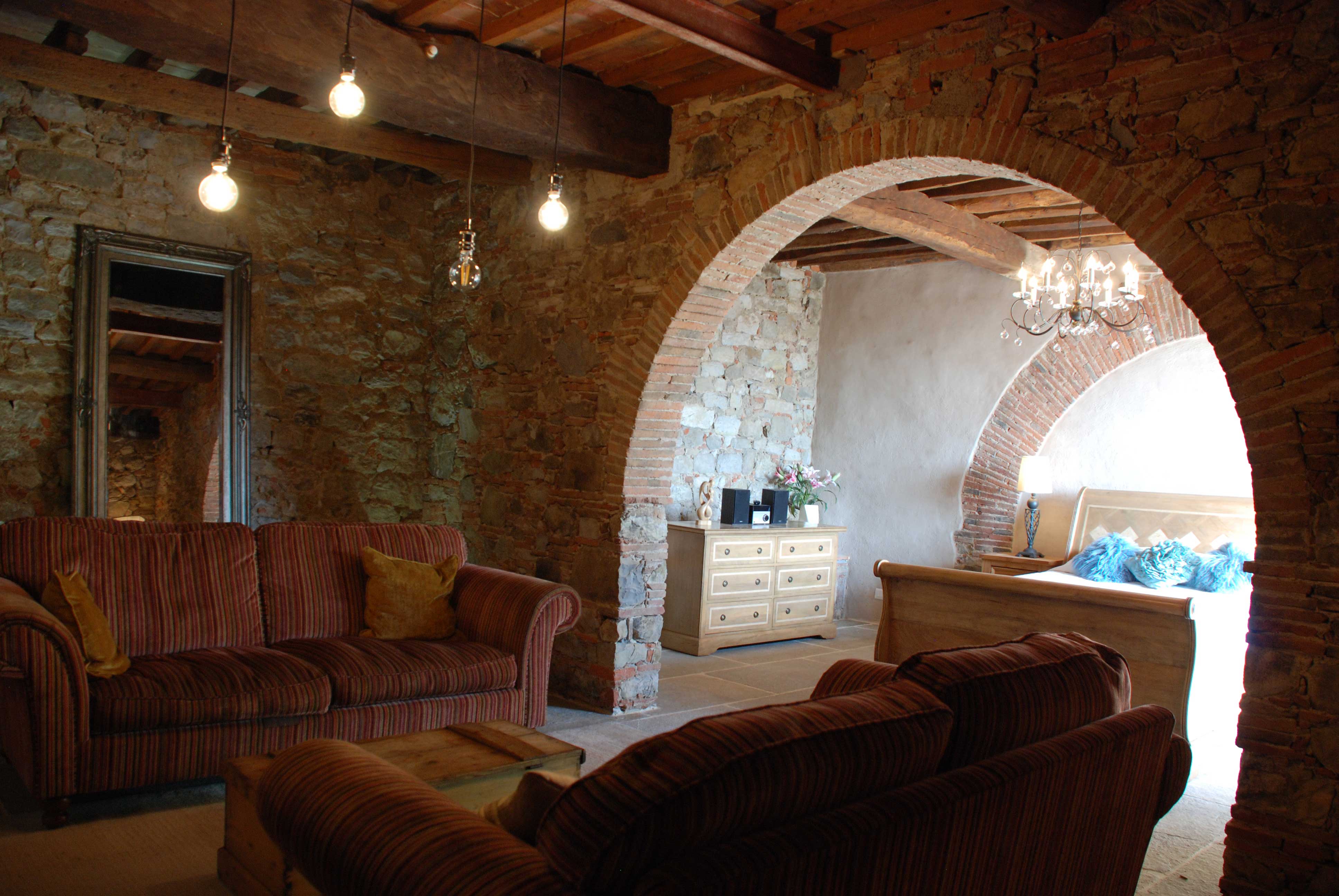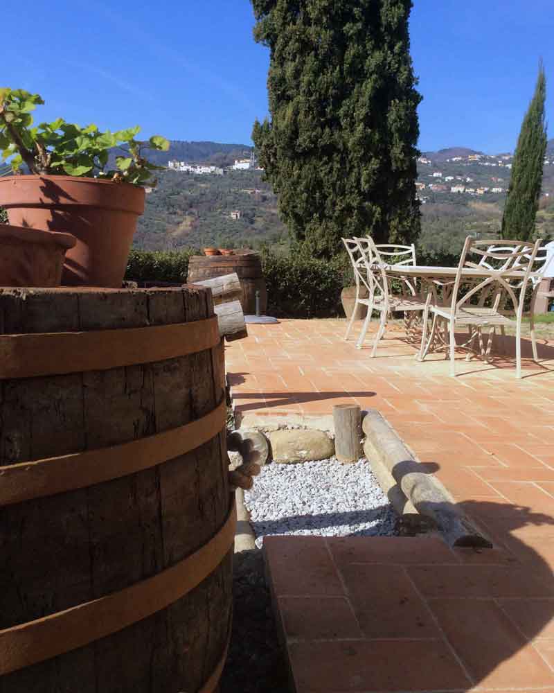 The house is located on a hillside with breath taking views of the plains of Lucca. The surrounding landscape consisting of beautiful rolling hills, furnished with vineyards and olive groves, can be enjoyed from each window of the house.